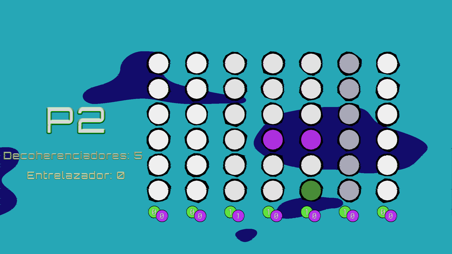 En cada turno podrás elegir si añades una partícula o colapsas la función de onda de la columna. También se puede dar el caso de que la columna llegue al máximo de partículas posibles en cuyo caso la columna colapsa por cuenta propia.